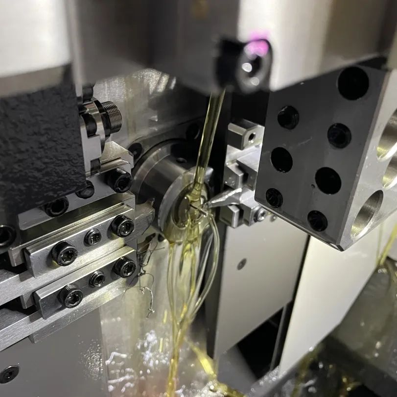 前期準(zhǔn)備完成后,就可以通過(guò)設(shè)計(jì)好的零件加工工藝進(jìn)行調(diào)車。機(jī)芯零件的加工精度是以μ級(jí)來(lái)衡量的,1μm相當(dāng)于1mm的千分之一,而人的頭發(fā)絲一般在0.04mm~0.05mm之間,可想而知,調(diào)整工在調(diào)車過(guò)程中的復(fù)雜程度。調(diào)整工在調(diào)車過(guò)程中需要先進(jìn)行刀具、夾頭、導(dǎo)套以及附件的安裝,然后進(jìn)行刀具中心的校正,接下來(lái)進(jìn)行對(duì)設(shè)備的調(diào)試,最后根據(jù)車落工藝圖紙的尺寸以及技術(shù)要求,對(duì)零件進(jìn)行調(diào)整,經(jīng)過(guò)3天到7天的一個(gè)周期,機(jī)床設(shè)備運(yùn)行穩(wěn)定、零件尺寸浮動(dòng)不大后,調(diào)整工就可以正式交付給操作工進(jìn)行零件的批量生產(chǎn)了。