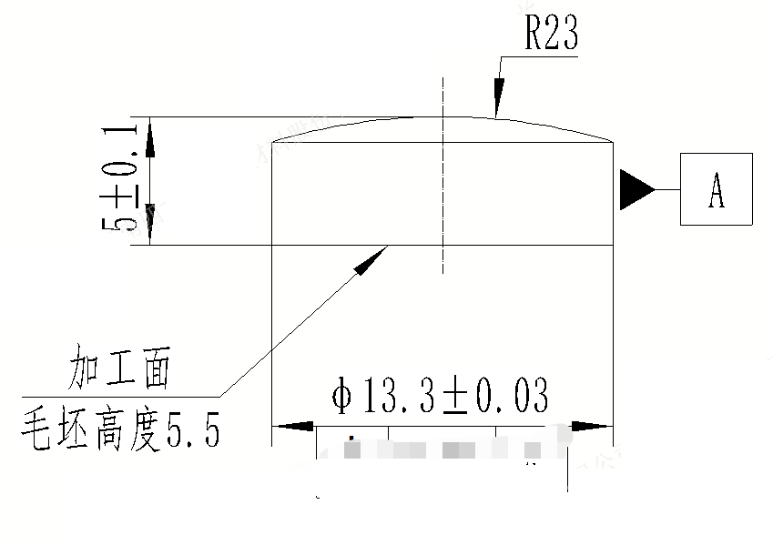 產(chǎn)品是合金,沒有磁性。 加工面同圓柱面A,垂直度<0.3。